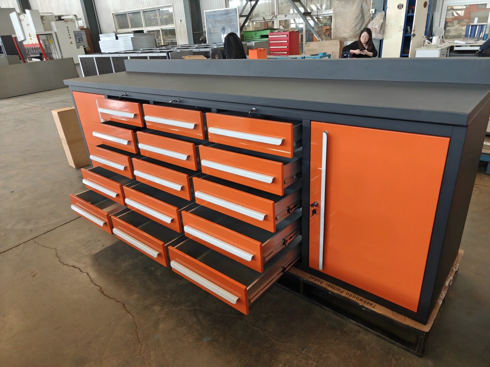 Oranssi työpöytä on valmistettu korkealaatuisista kylmävalssatuista teräslevyistä, jotka muodostavat CNC-laitteet leikkauksen, lävistyksen, taittamisen, hitsauksen ja muiden prosessien avulla. Pinta käsitellään automatisoidulla sähköstaattisella ruiskutusprosessilla, joka on sekä kaunis että kestävä. Oranssin työpöydän laatikon vaakasuorat ja pystysuorat osiot voidaan säätää vapaasti tukemaan tilan erottelua esineiden koon mukaan. Yksikkötyyppiset osien laatikot voidaan myös valita puhdistetun luokituksen ja tallennustilan saavuttamiseksi. Oranssin työpöydän laatikkokiskot on suunniteltu korkealaatuisilla laakereilla. Yhden kappaleen laatikon kuormituskapasiteetti on 80 kg ja aukonopeus 85%; Kaksinkertaisen laatikon kuormituskapasiteetti on 140 kg ja aukko on 100%, ja se on joustava ja sileä työntää ja vetää.